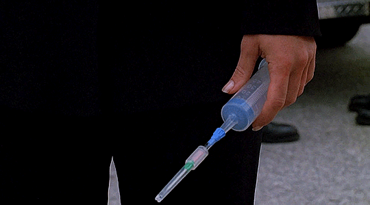 Like the swollen tissue bursting open and peppering Scullyâs medical gown with blood. đ Itâs really lucky that Scully reacted fast enough that she stood up when the swollen tissue first looked like it might burst, because that blood very easily couldâve hit her face. And Scully wasnât wearing a mask. đđđđ